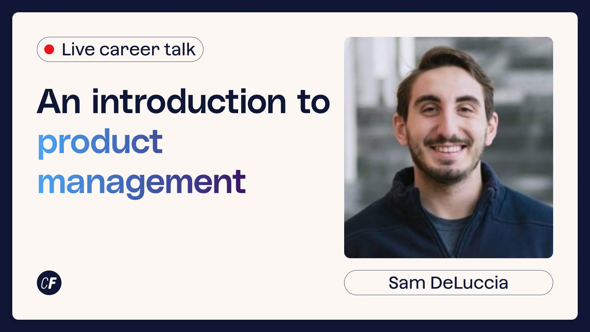 We hosted a career talk with Sam DeLuccia, an industry expert with extensive experience as a product manager at NeuroFlow, as well as a product management coach and CareerFoundry tutor.